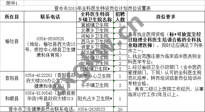 附件:1、晉中市2019年全醫生特設崗位計劃設置表