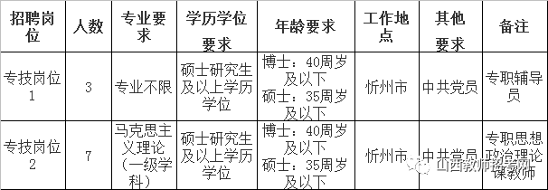 1.忻州師范學院2019年專項招聘工作人員崗位表