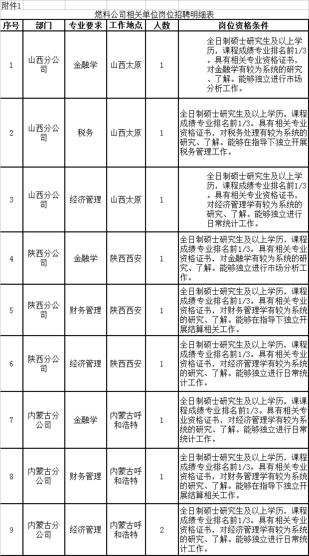 (二)崗位條件相關招聘崗位及專業條件詳見附件1。