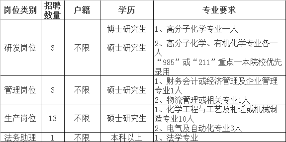 招聘山納合成橡膠有限責任公司工作人員19名,具體崗位要求見《2019年山納合成橡膠有限責任公司招聘工作人員計劃表》:
