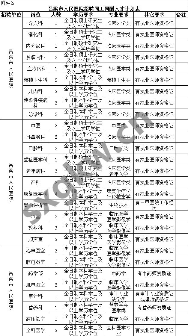 2.《呂梁市人民醫院招聘同工同酬人才計劃表》